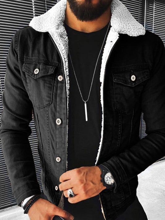 Ανδρικά Faux Μαλλί Πυκνωμένο Denim σακάκι.