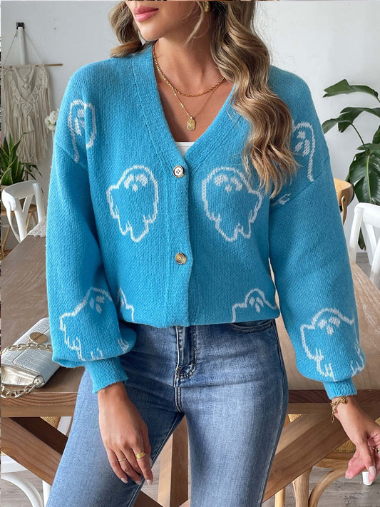 Γυναικείο ελαφρύ μπλε Paisley πουλόβερ ζιβάκι