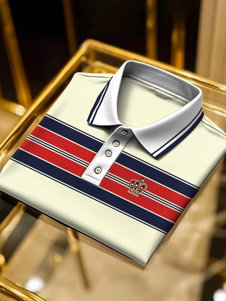 Ανδρικά μπεζ ριγέ επιχειρηματικό πόλο πουκάμιση