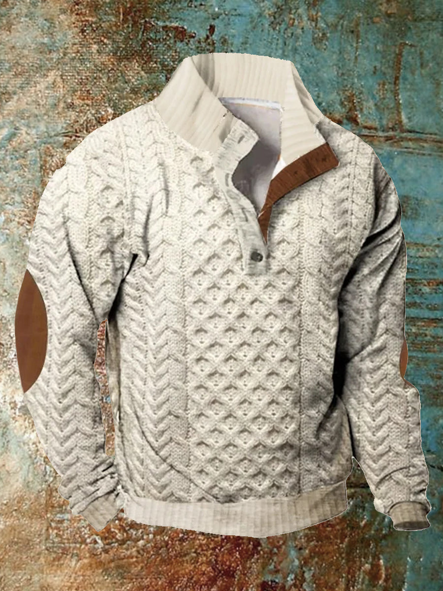 Ανδρικά Ρέτρο μακριά μανίκι Henry γιακά πλεκτά πουκάμιση