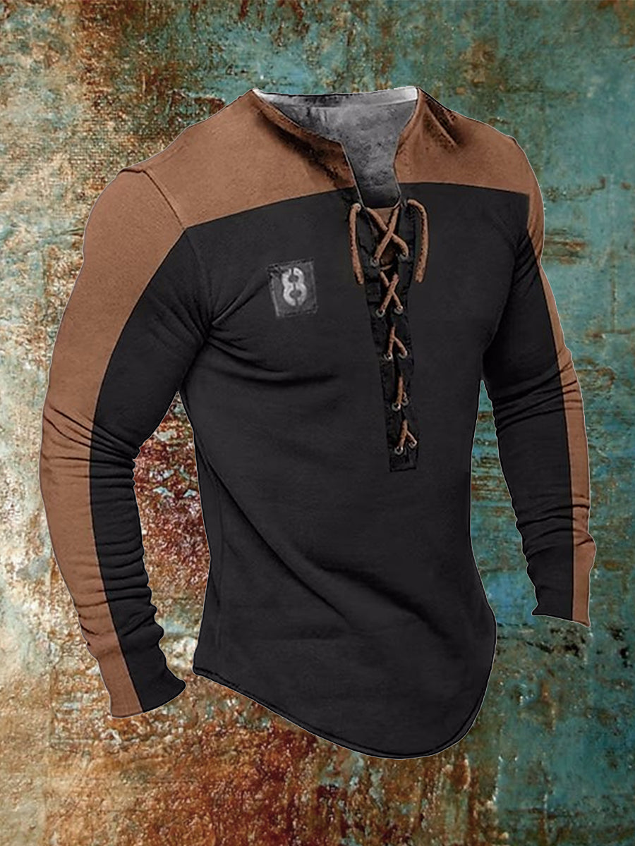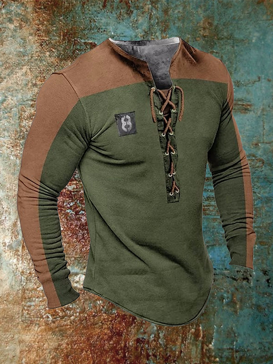 Ανδρικά ρετρο στερεό χρώμα κουκούλα με μακριά μανίκι Casual κορυφαίο