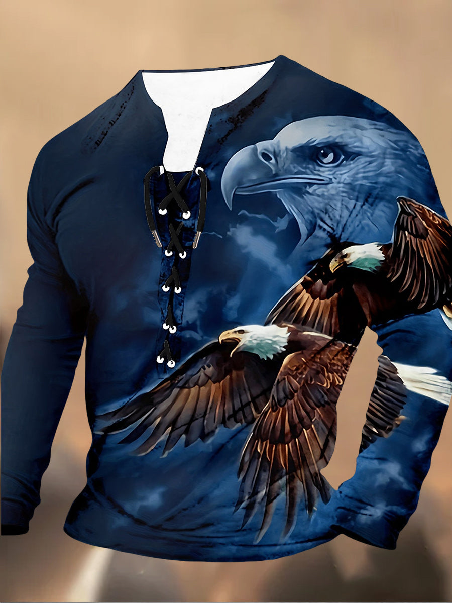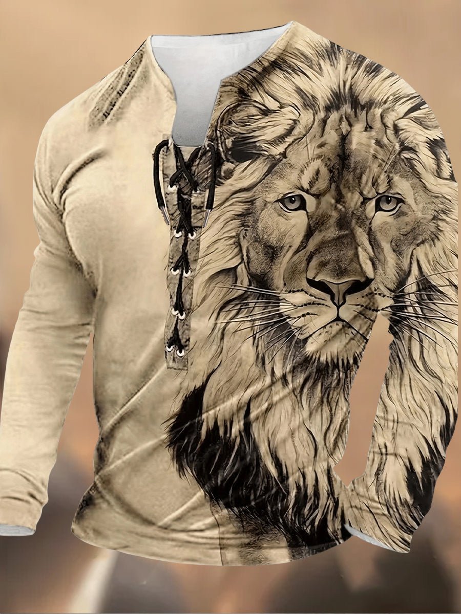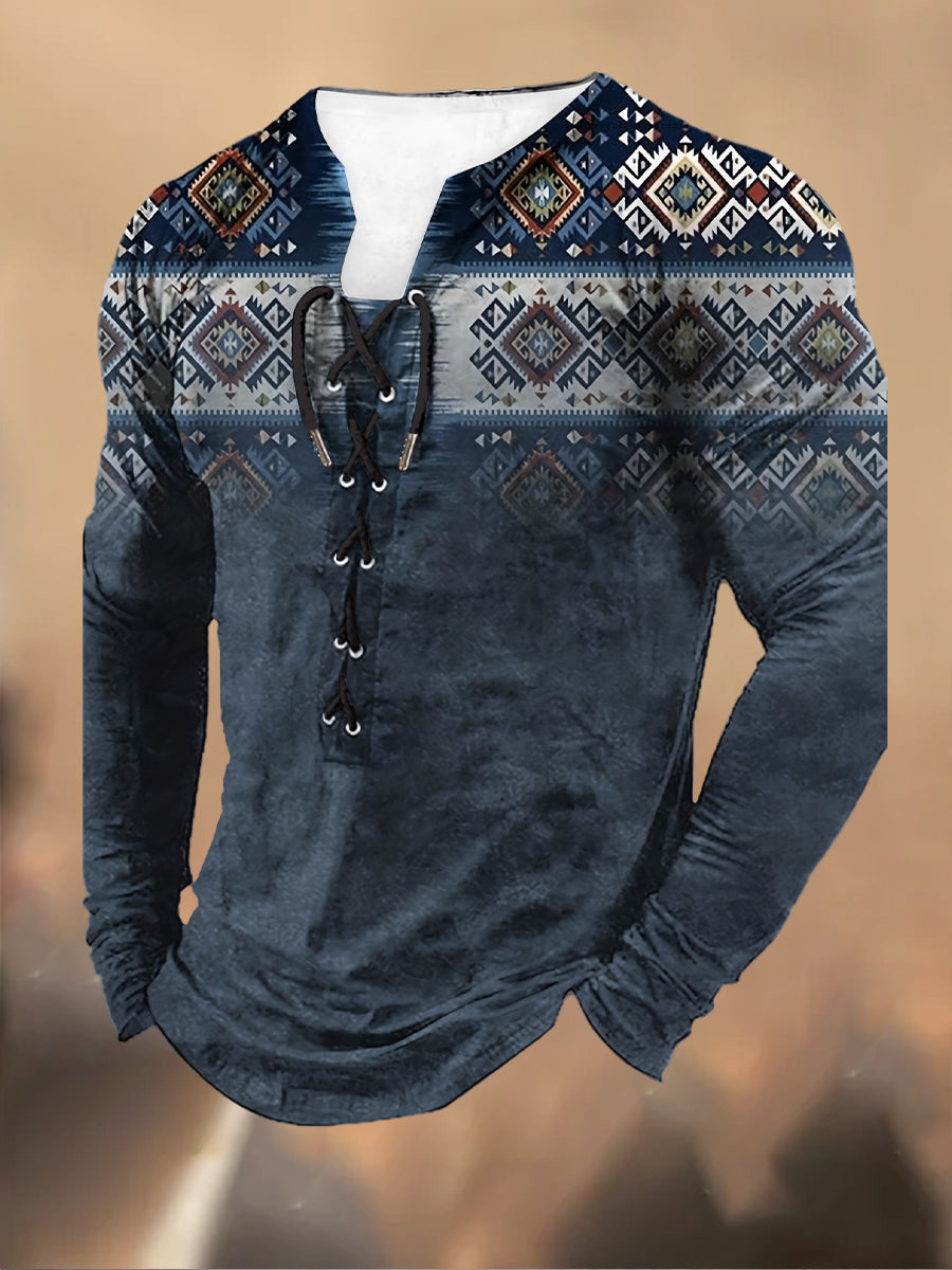 Ανδρικά Retro εκτύπωση Δαντέλα-Up κουκούλα μακριά μανίκι περιστασιακή κορυφή κορυφαίο