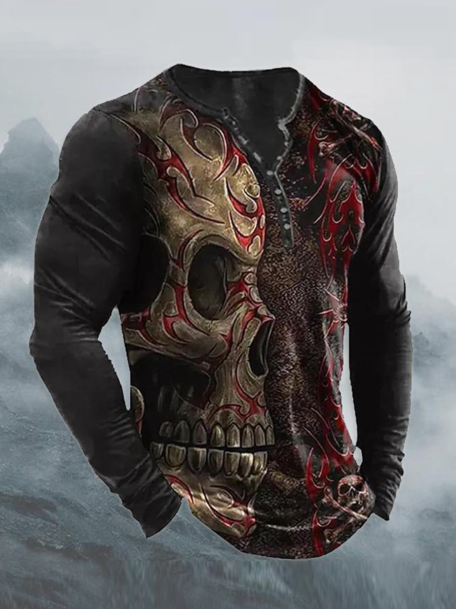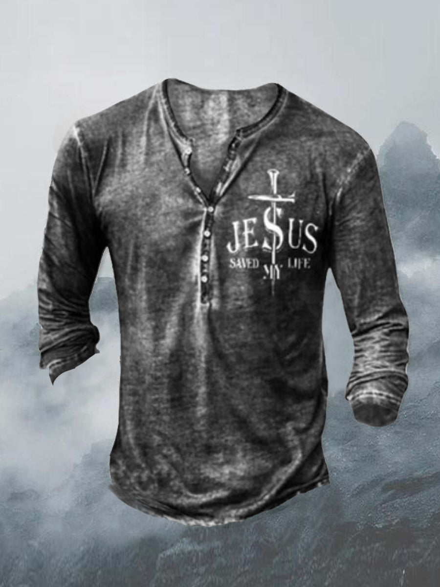 Ανδρικά Retro Casual μόδα τυπωμένα μακριά μανίκι T-Shirt