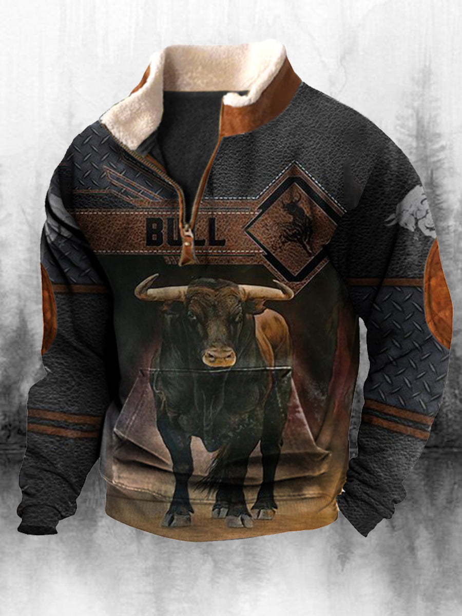 Ανδρικά Retro Western Εκτύπωση ψηλό λαιμό μισό Zip μακριά μανίκι πάνω από το κορυφαίο