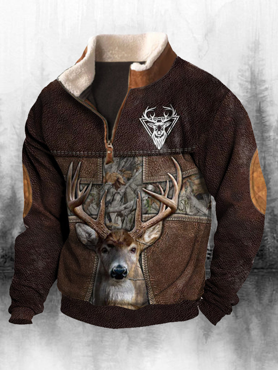 Ανδρικά Retro Western Εκτύπωση ψηλό λαιμό μισό Zip μακριά μανίκι πάνω από το κορυφαίο