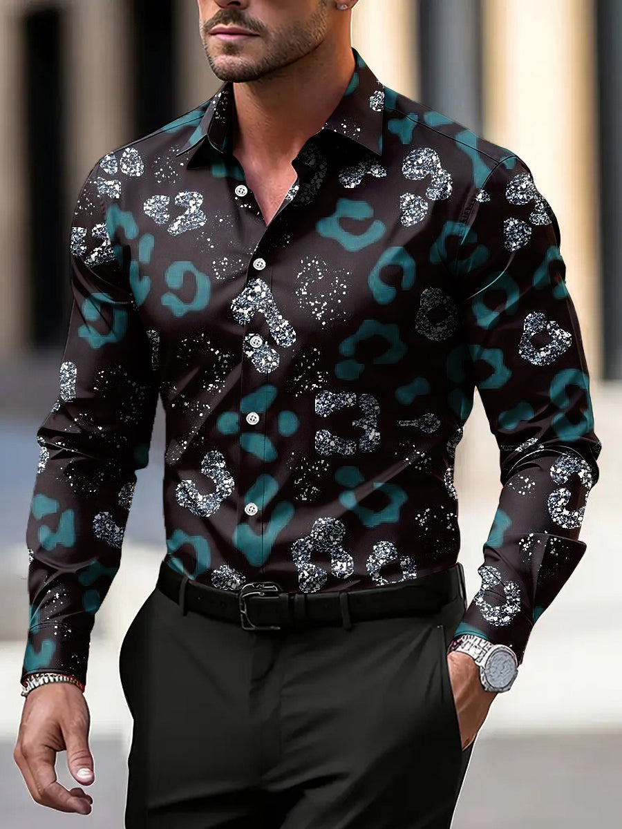 Ανδρικά Vintage Αφηρημένη λεοπάρδαλη Εκτύπωση επιχειρηματικό πουκάμιση