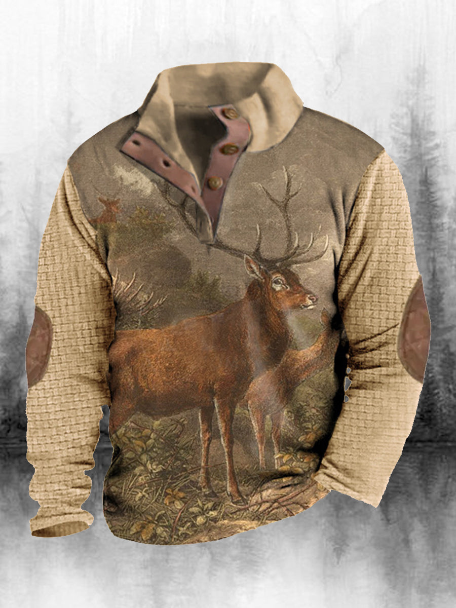 Ανδρική εθνική εκτύπωση υψηλό κολάρο μισό φερμουάρ μακριά μανίκι κορυφαίο