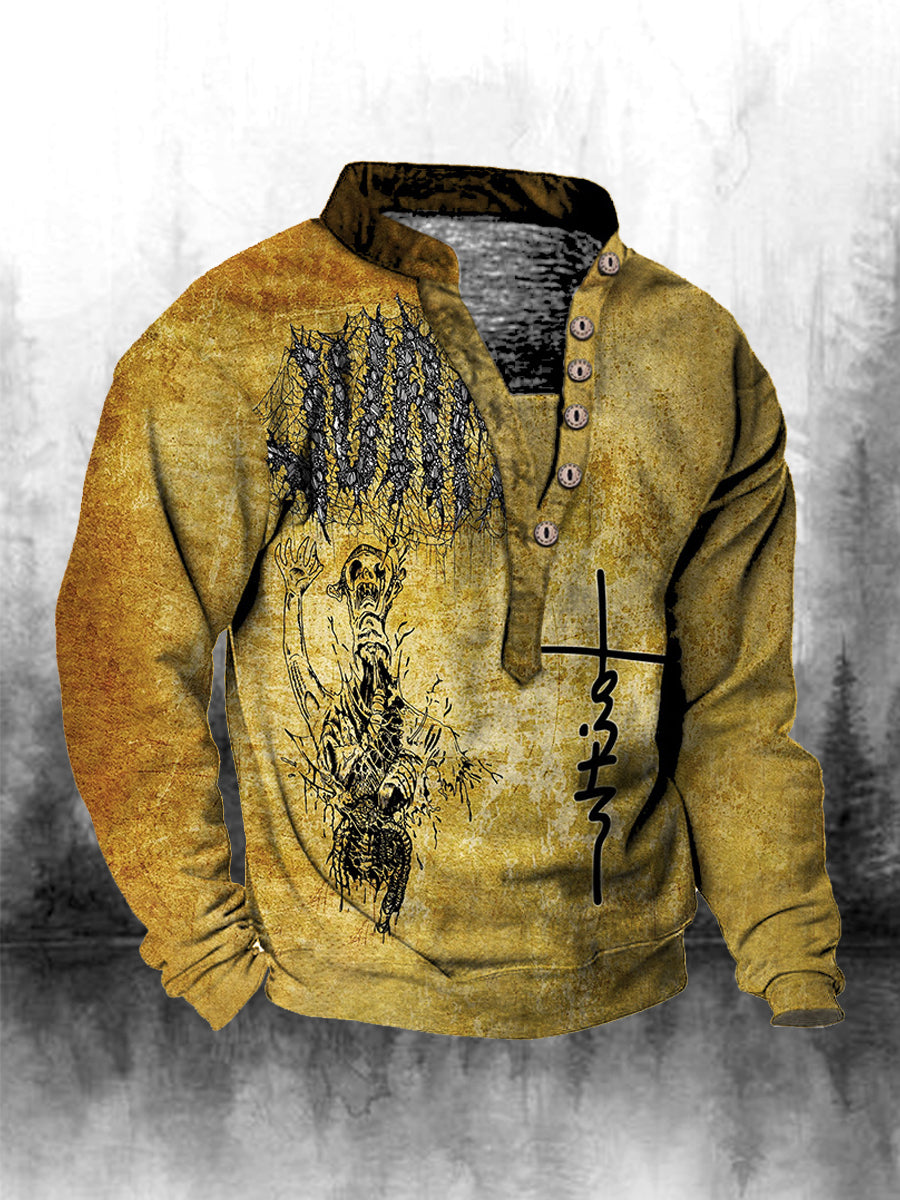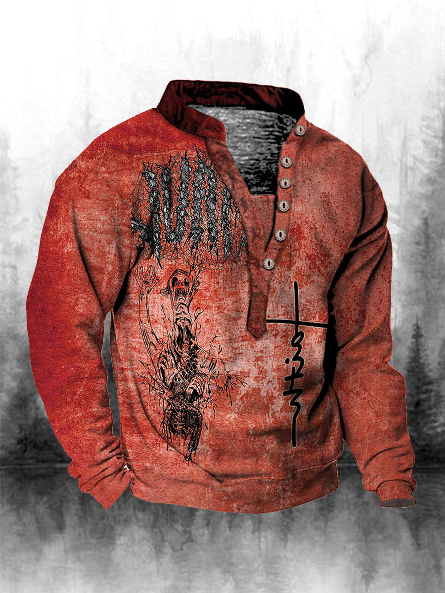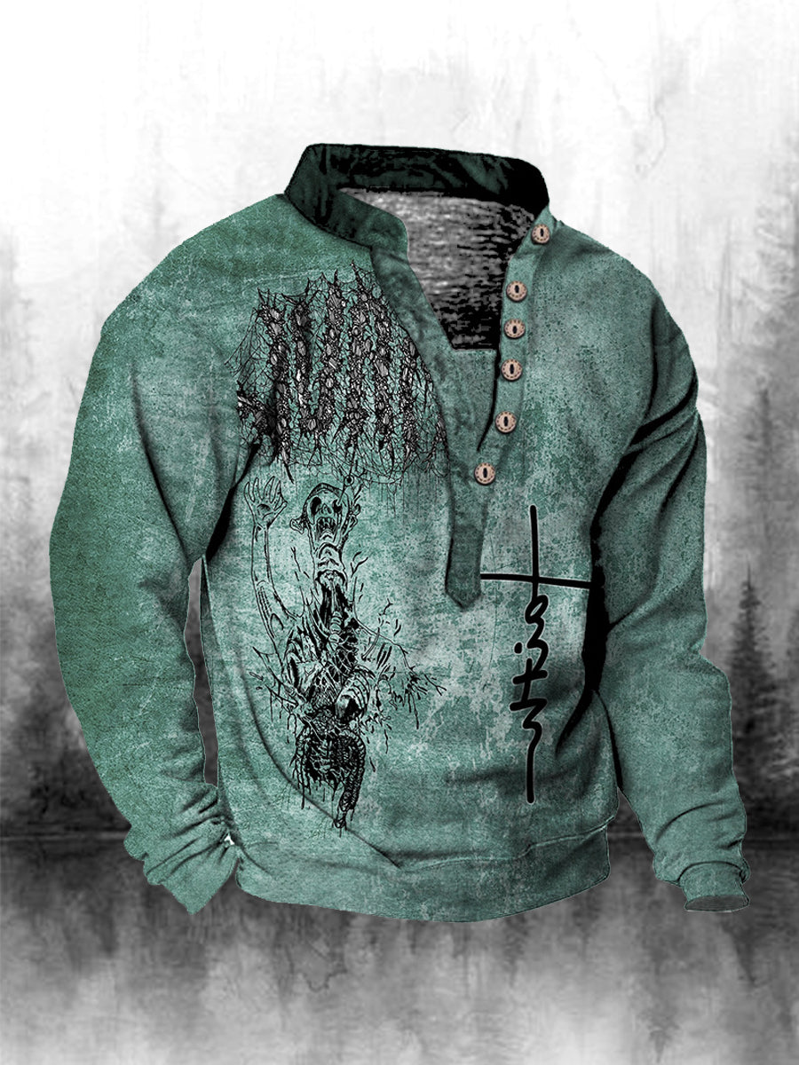 Ανδρική πίστη εκτύπωση Henley κολλάρα μακριά μανίκι μουρούνι