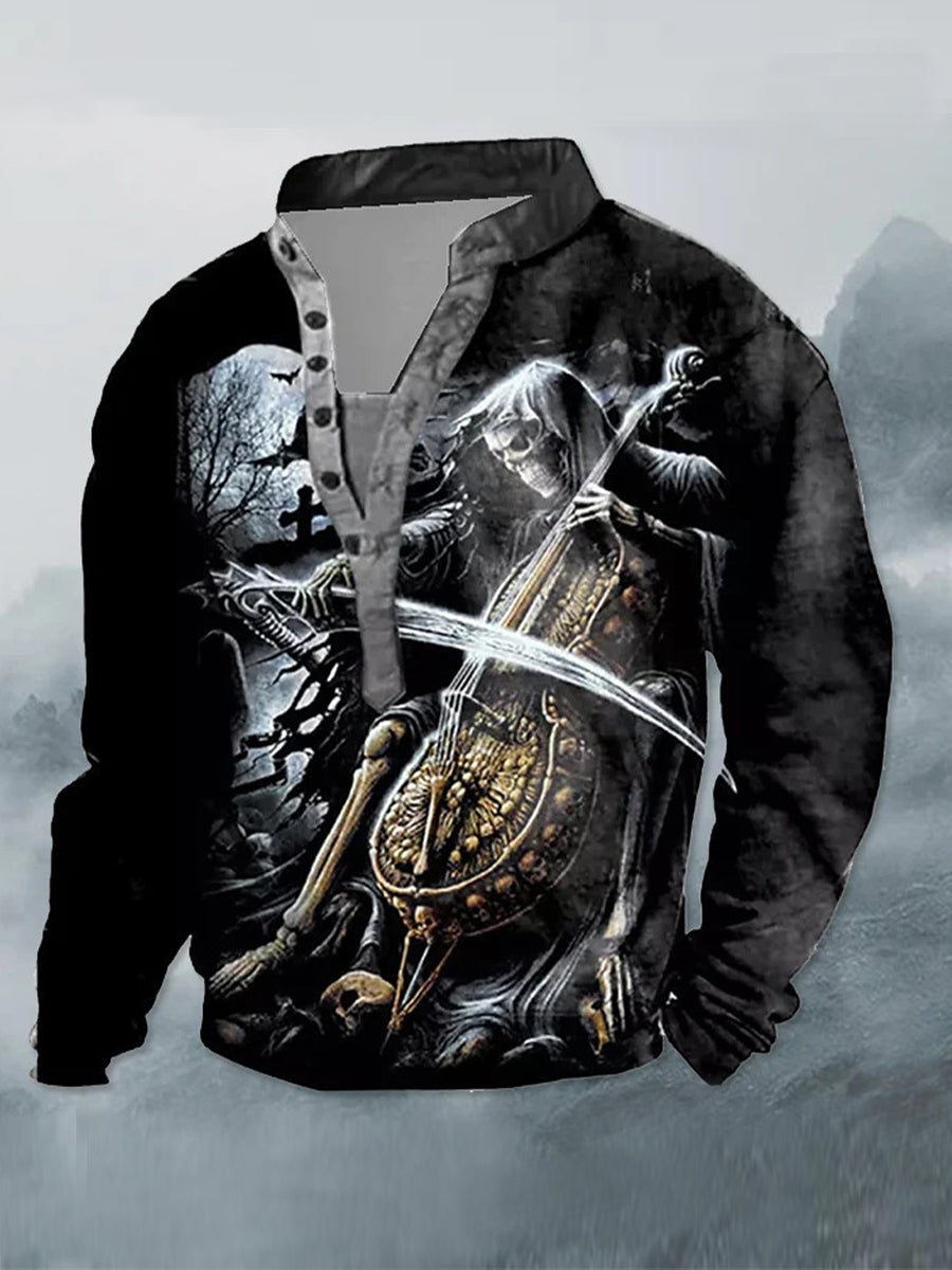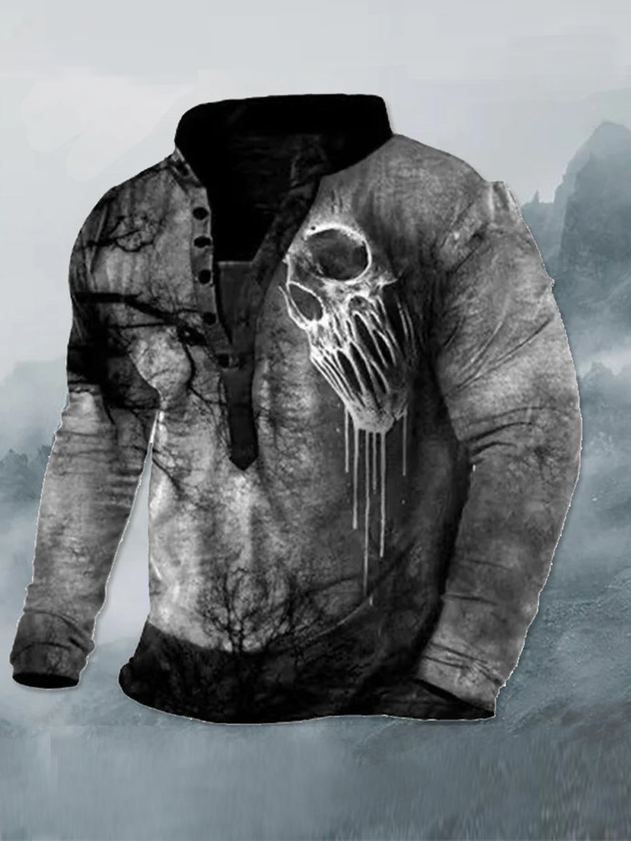 Ανδρική στάση κολάρο μακριά μανίκι T-shirt εξωτερική μπλούζα