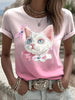 Γυναίκες χαριτωμένη γάτα και διαμάντι κορδέλα καρκίνο του μαστού θέμα casual στρογγυλό λαιμό κοντό μανίκι