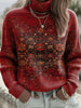 Γυναικεία βαθιά κόκκινη παραδοσιακή εκτύπωση Niche υψηλό λαιμό Jumper λαιμό