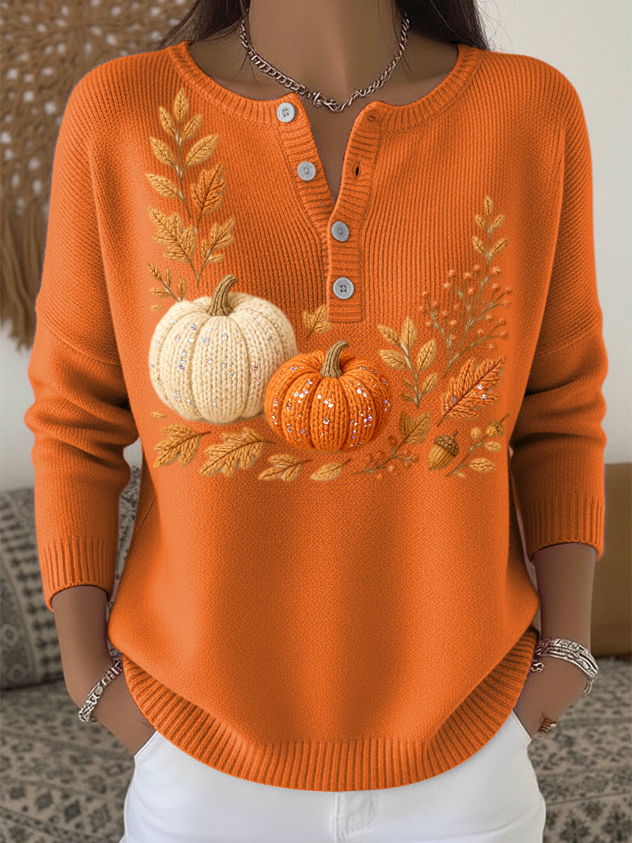 Γυναικεία γιορτή Ευχαριστιών κολοκύθα ανθρακικό τέχνη V-λαιμό πουλόβερ.