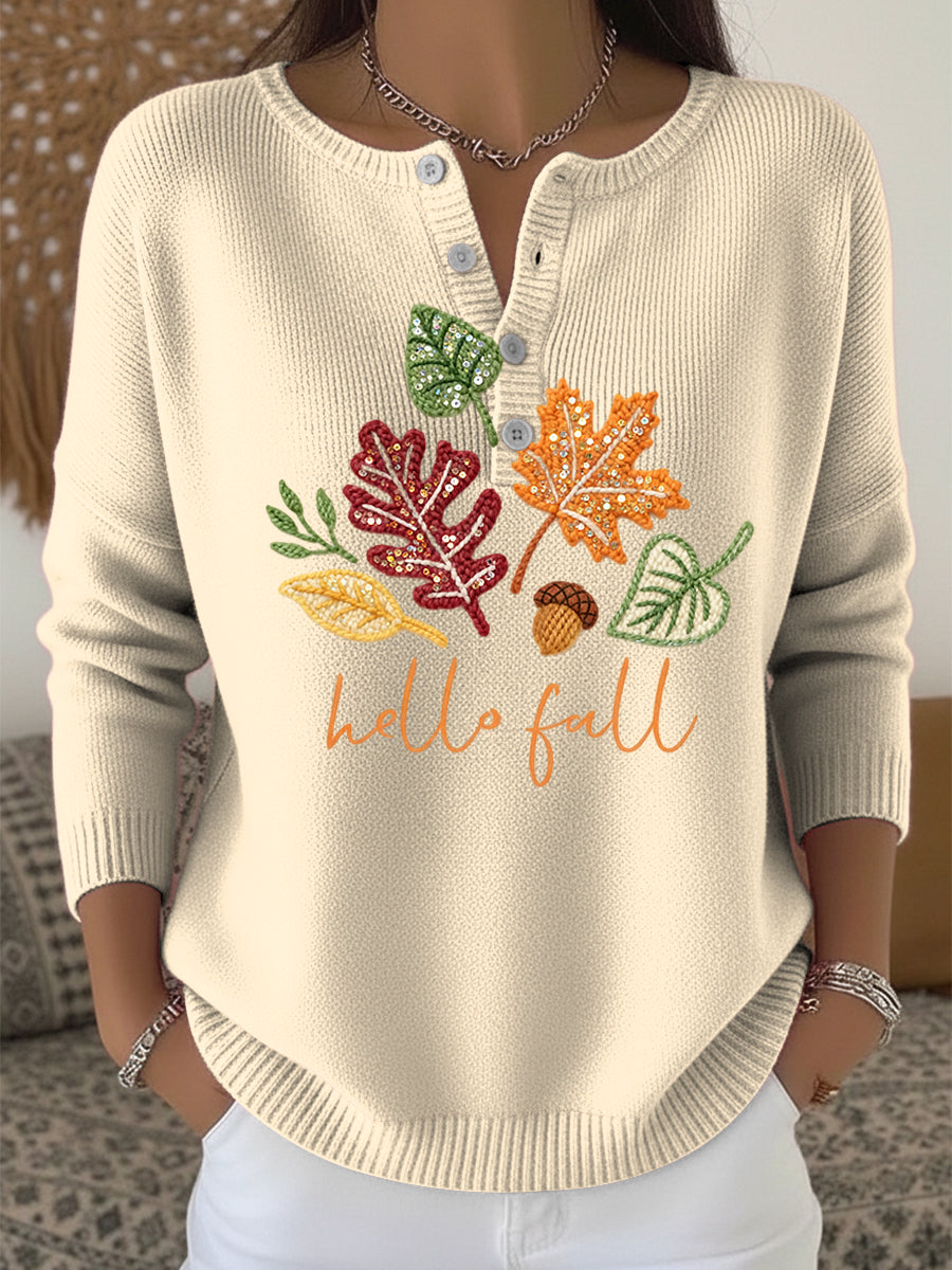 Γυναικεία Ημέρα Ευχαριστιών Φθινόπωρο φύλλο τέχνης V-λαιμό πουλόβερ.