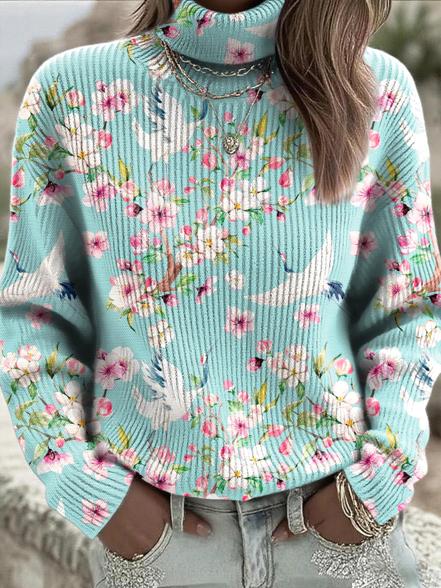 Γυναικεία παραδοσιακή λουλουδιά και μοτίβο πουλιών Jumper τζιβάκι