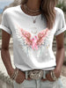 Γυναικεία πτέρυγα και κορδέλα καρκίνο του μαστού θέμα λευκό casual στρογγυλό λαιμό κοντό μανίκι