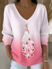 Γυναικείο γυναικείο ροζ βαθμολογία V - λαιμό Φούτερ με παγώνια