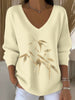 Γυναικείο ευρωπαϊκό στυλ ανοιχτό κίτρινο V-λαιμό πουλόβερ, στολισμένο με απλά λουλούδια κεντήματα, εξαιρετική ζεστασιά, ενίσχυση της καθημερινής γεύση επίδεσμου