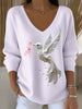 Γυναικείο ευρωπαϊκό στυλ ανοιχτό μωβ πουλόβερ V-λαιμό, στολισμένο με χαριτωμένο περιστέρι και λουλούδια κεντήματα, Κομψό και απαλό, ενισχύοντας την υφή της καθημερινής φθοράς