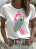 Γυναικείο λευκό φτερό κορδέλα κεντημένο ασθενή T-shirt