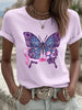 Γυναικείο μοντέρνο ευρωπαϊκό ελαφρύ μωβ μπλουζάκι, ματιωμένο πεταλούδα λουλούδια και κορδέλα πρόληψης καρκίνου του μαστού σχεδιασμού κορδέλα