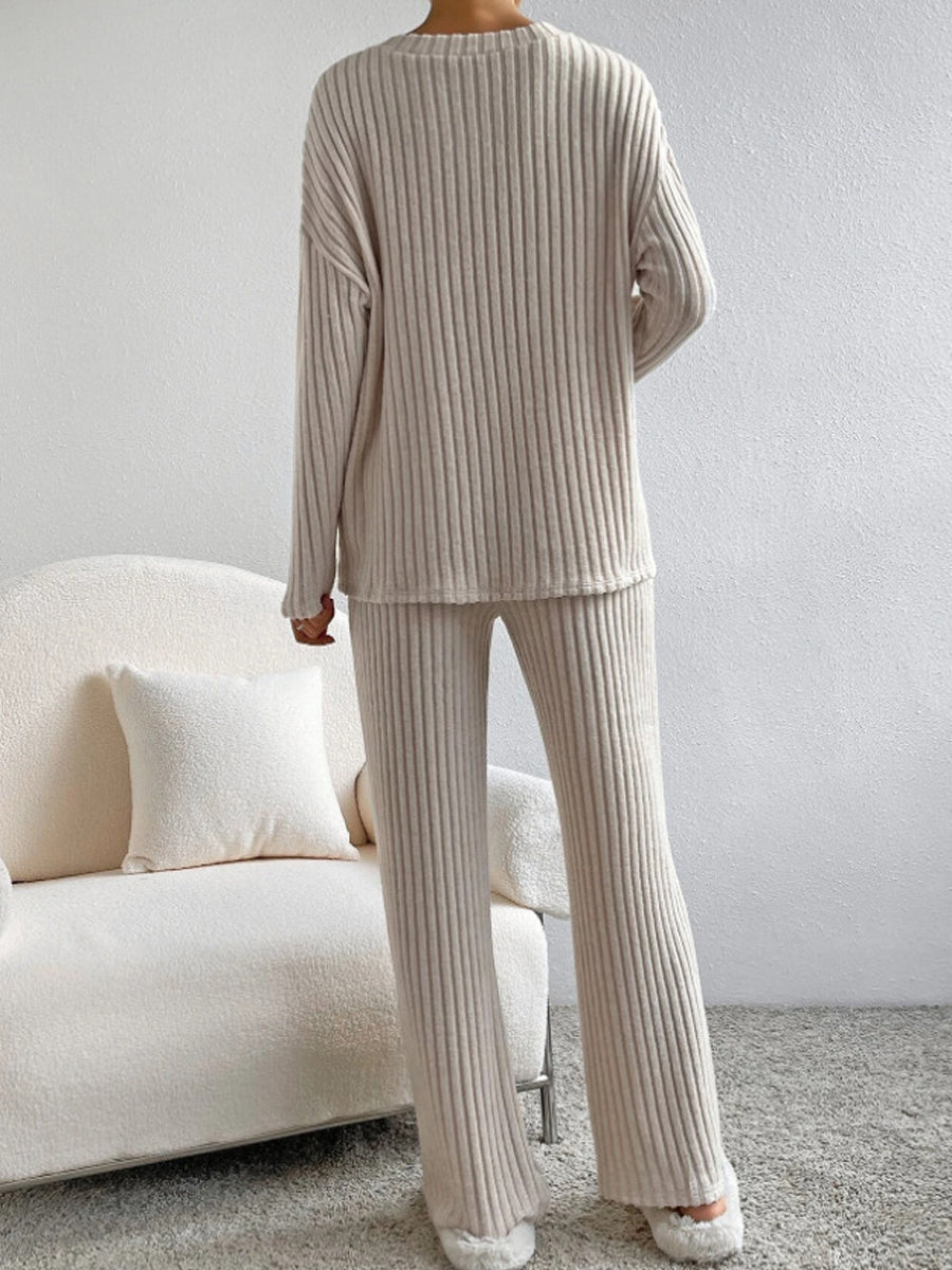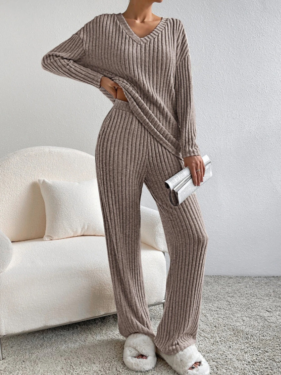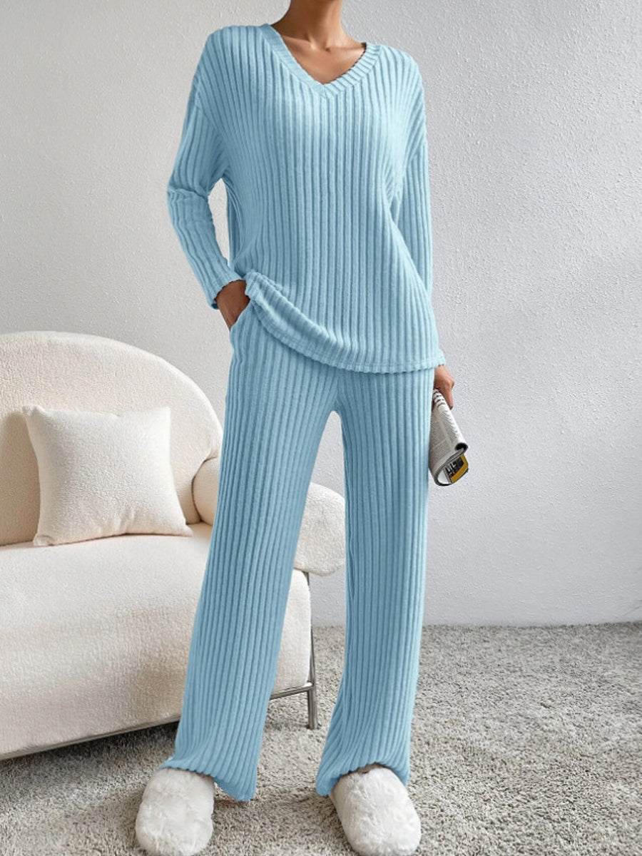 Γυναικείο μόδα V-λαιμό πλεκτά παντελόνια πλεκτά σετ ευθείας πόδις