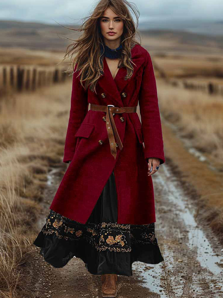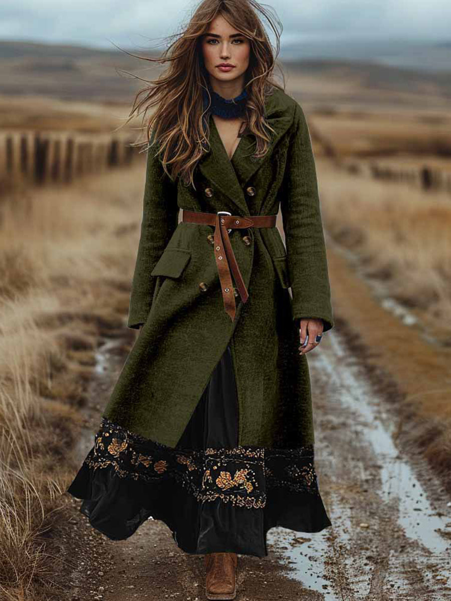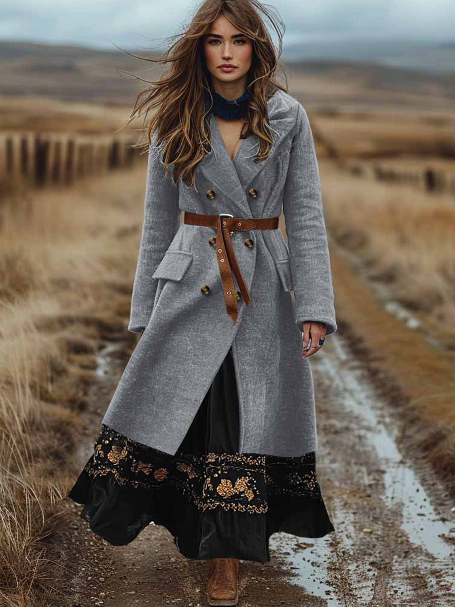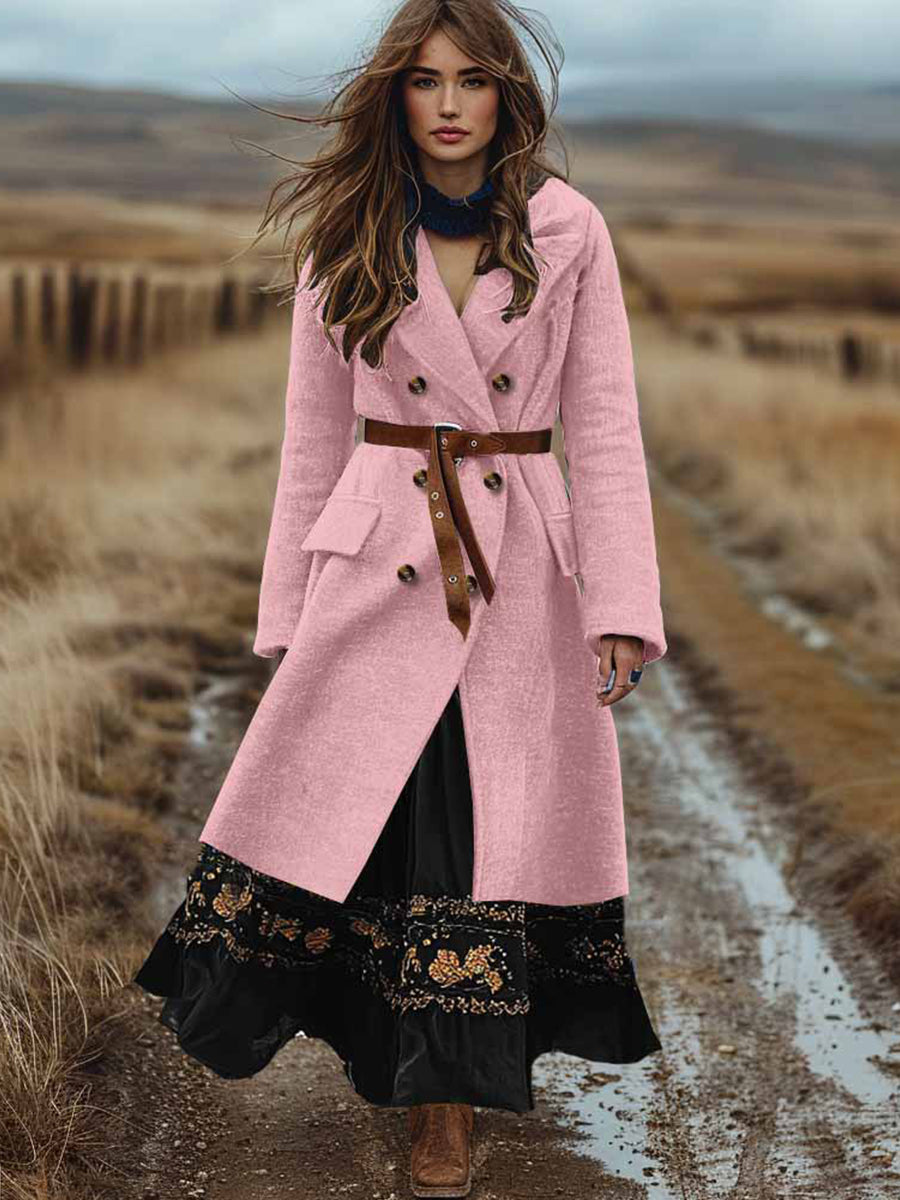 Γυναικείο Ρέτρο Μποέμ διπλό σπασμένο φθινόπωρο και χειμερινό μαλλί παλτό