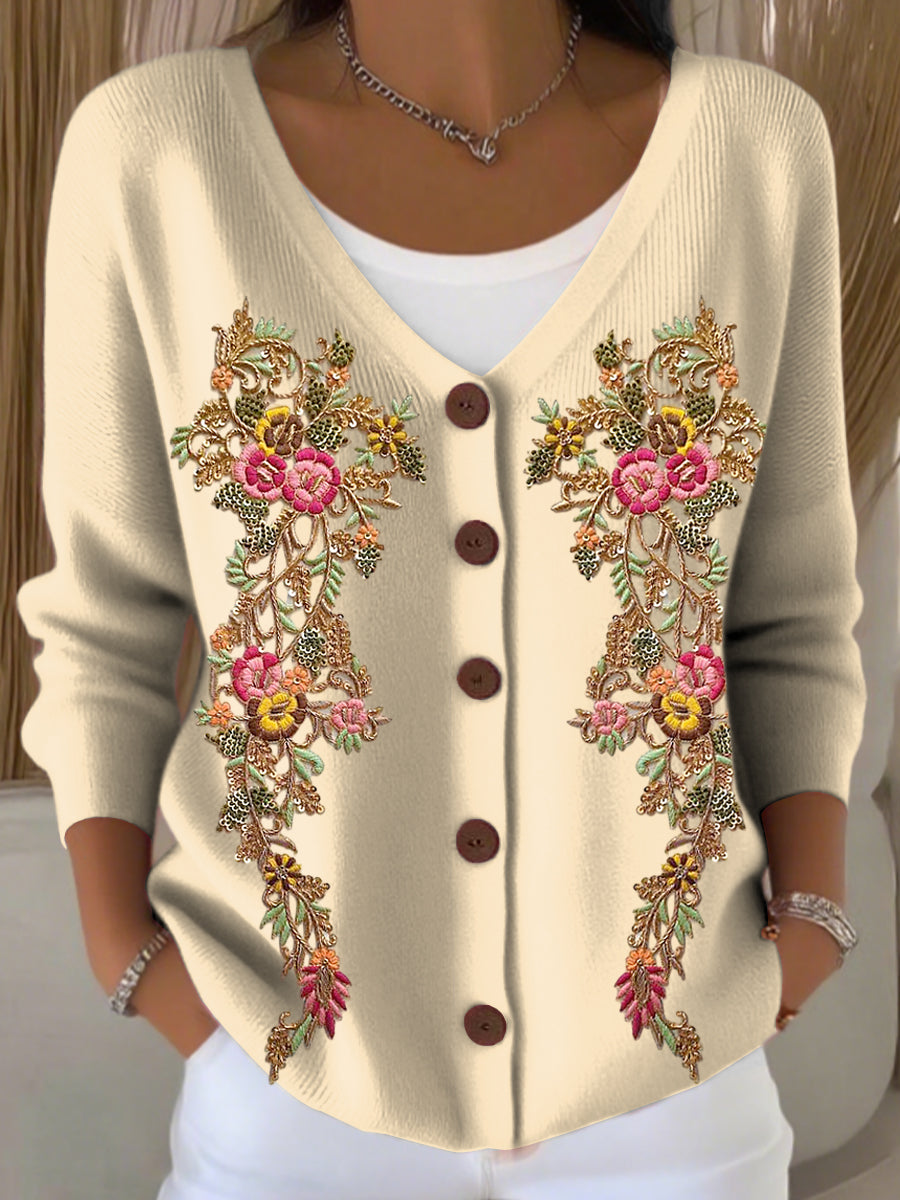 Γυναικείο ρομαντικό λουλούδι V-λαιμό πλεκτά