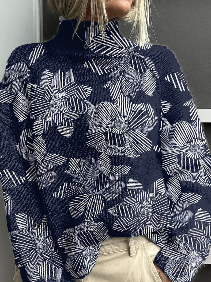 Γυναικείο σκούρο μπλε ανθοπωλείο πουλόβερ τριβέλι