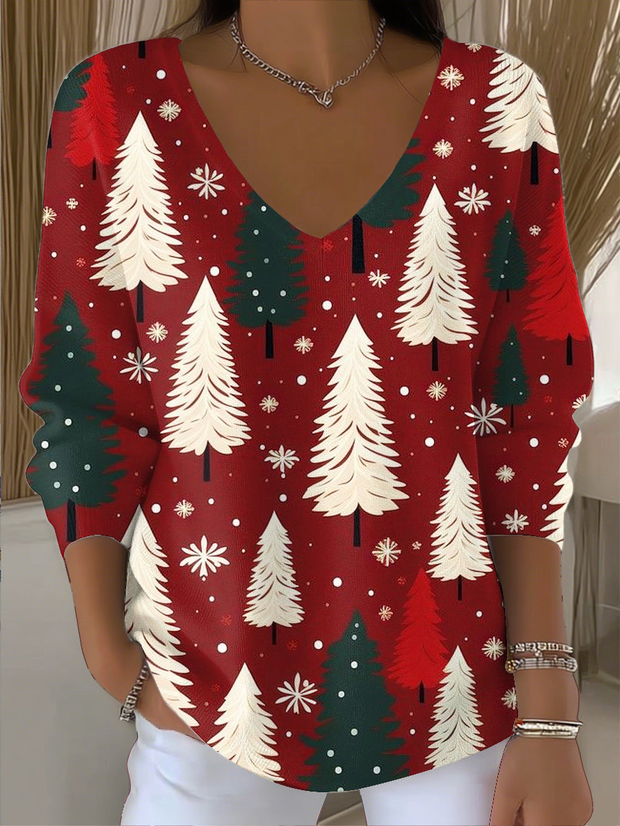 Γυναικείο Χριστουγεννιάτικο δέντρο κόκκινη τέχνη V-Neck top.
