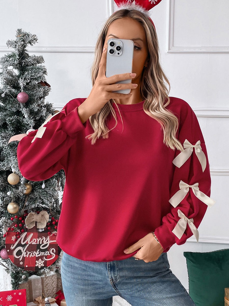 Γυναικείο Vintage Χριστούγεννα κόκκινο τόξο Casual πουλόβερα