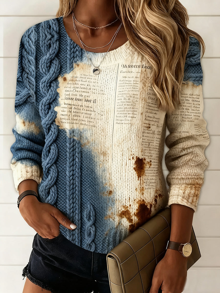 Γυναικείο Vintage Floral Τέχνη Εκτύπωση περιστασιακό πουλόβερ άνεσης