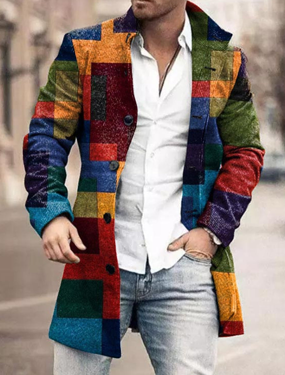 Ανδρική τέχνη εκτύπωση περιστασιακό μαλλί παλτό