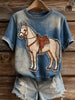 Γυναικείο καλλιτεχνικό ζώο εκτύπωση άνετο πλεκτό κοντό μανίκι κορυφού