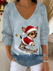 Γυναικείο Vintage Χριστουγεννιάτικο Ζώο εκτύπωση Casual μακριά μανίκι κορυφαίο