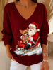 Γυναικείο Vintage Χριστουγεννιάτικο Ζώο εκτύπωση Casual μακριά μανίκι κορυφαίο