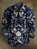 Vintage κουνέλι και κουκουβάγια λουλούδια εκτύπωση Casual μακριά μανίκι πουκάμισα
